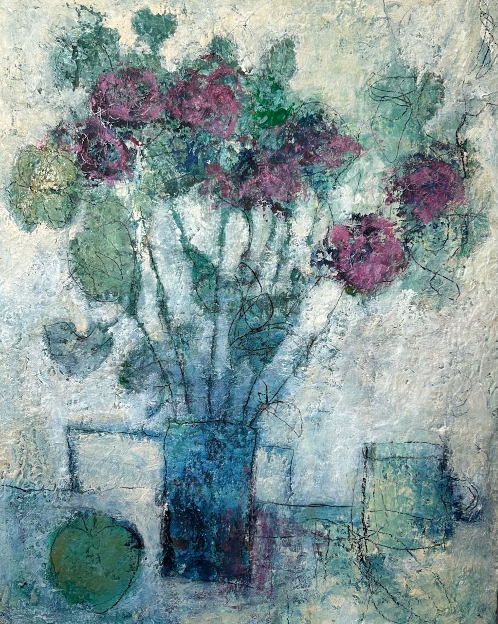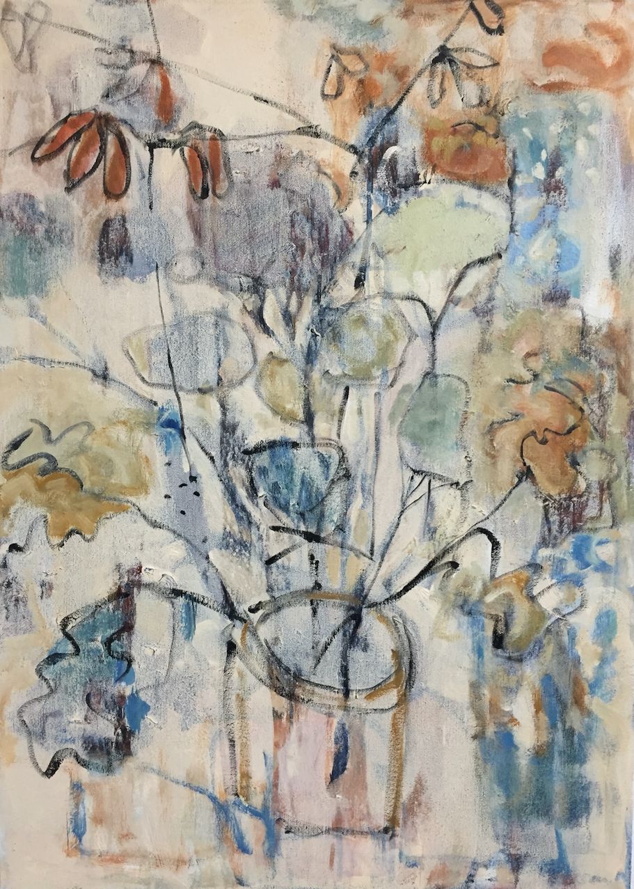 What is a line? It may be moving freely around the surface; it may repeat to create movement; a contouring line can depict a form; it can cut though an area of colour; reacting to what is seen or unseen; taking the viewer around the canvas - or off the edge and bringing us back again into the composition.