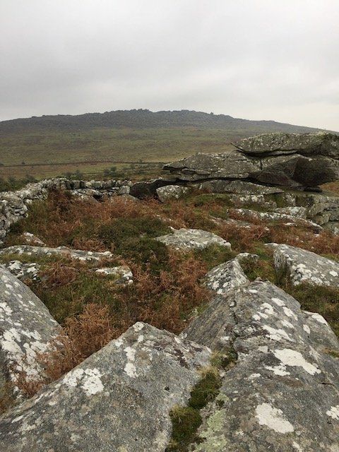 More stunning autumn colours, then granite boulders against a grey sky, and wonderful moorland views.