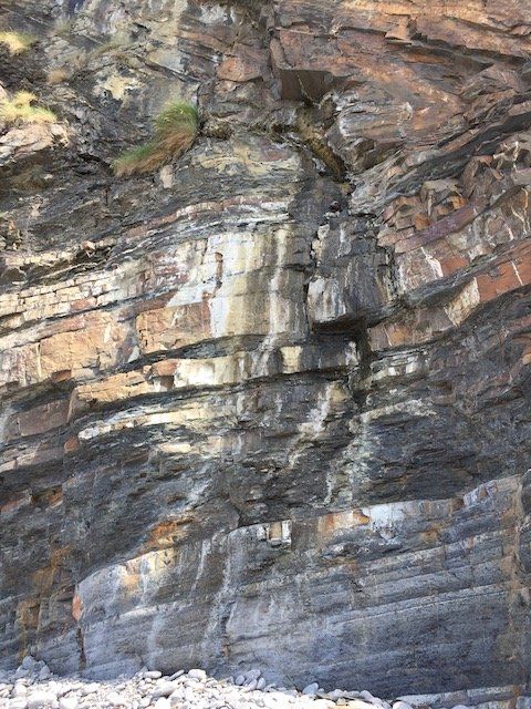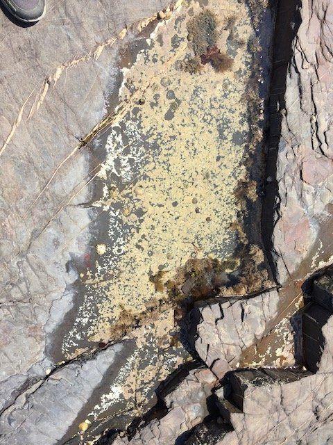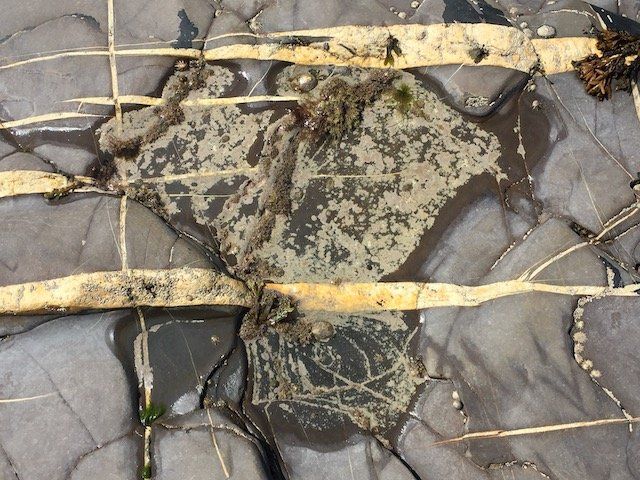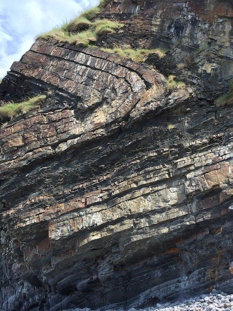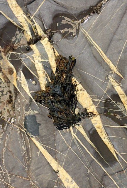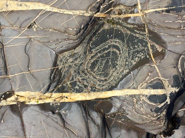 The colours already established on the canvas, and I'll continue with now, adding the flowing lines created by the water, and criss-crossing of the the minerals in the rocks - I'll have to research what these are.