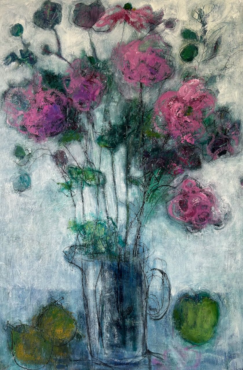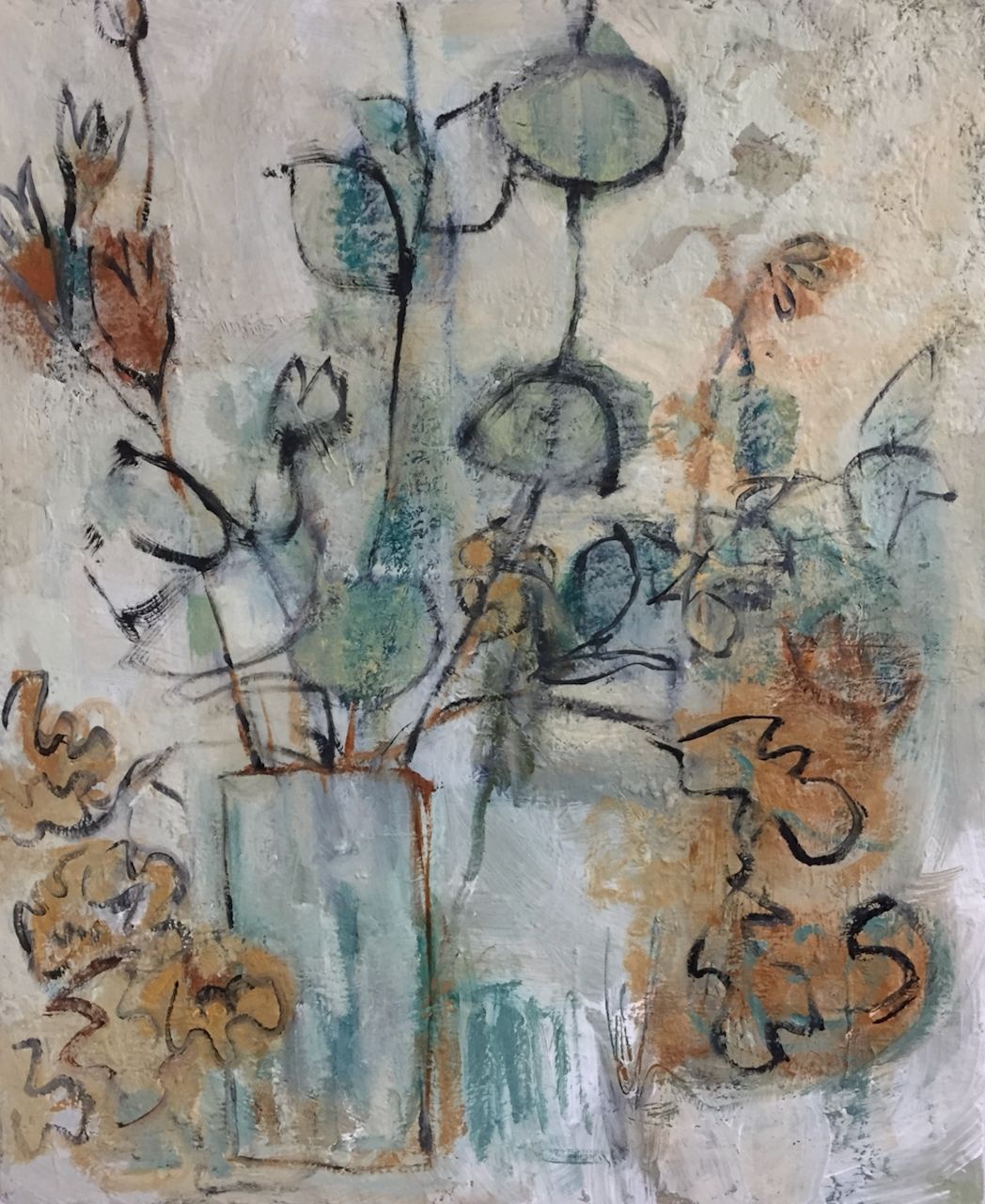 What is a line? It may be moving freely around the surface; it may repeat to create movement; a contouring line can depict a form; it can cut though an area of colour; reacting to what is seen or unseen; taking the viewer around the canvas - or off the edge and bringing us back again into the composition.