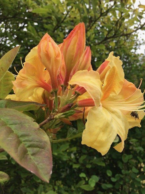In the studio today I find myself picking up the reds and orange tubes of paint and spreading these onto a canvas - see detail in top image - wow! So a walk around my garden soon shows me where this is coming from. Each day I'm looking out at this exuberant display of blossom of the most lovely colours. Can I make then work in my paintings?