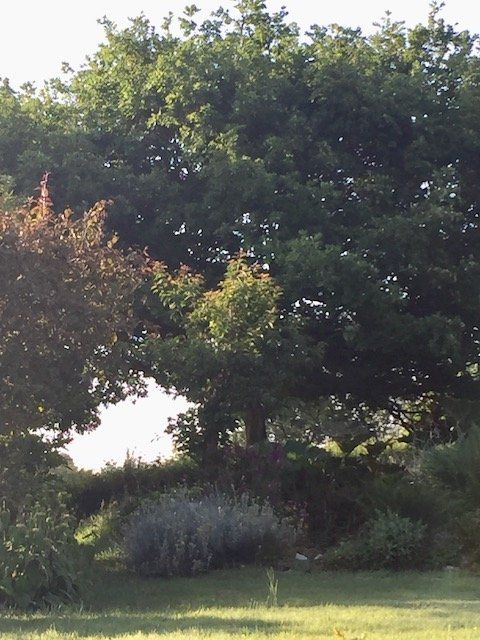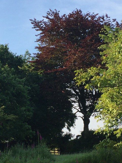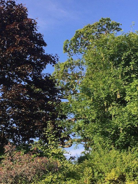 This June morning the low sunlight emphasised the beautiful trees and shadows. I saw strong compositions here for paintings, and to move a way from the neutral colours and use the greens and each colours of the garden.