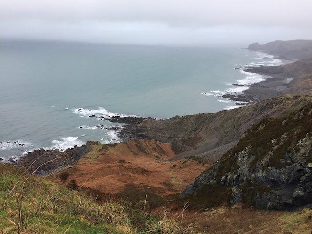 Stunning colours today, of bracken against the dark cliffs, the blue-grey sea and sky, with splashes of sunlight.